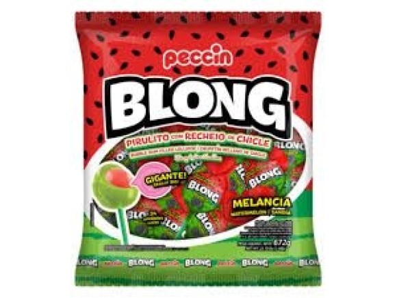 Pirulito Blong Morango Recheio Chiclete 672g - Peccin