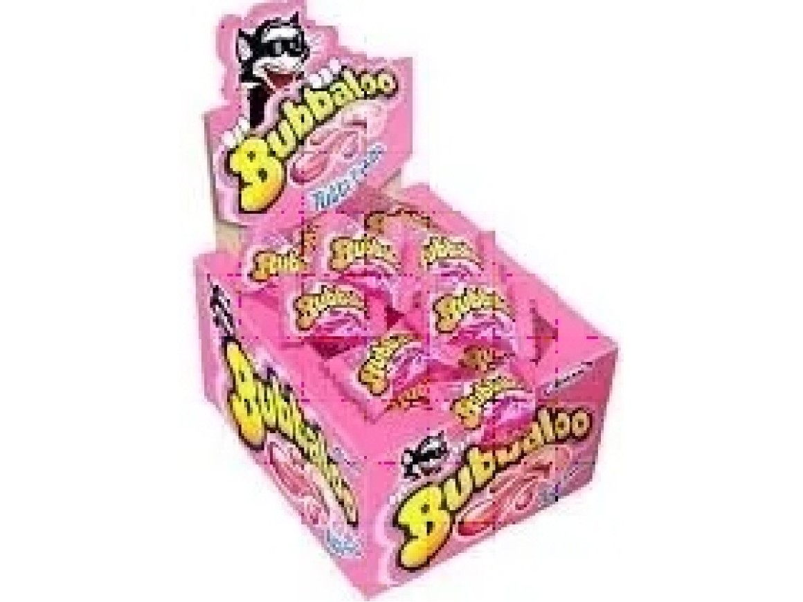 O famoso chiclete bubbaloo no sabor tuti-fruti Embalagem de 300g contendo aproximadamete 60 unidades.