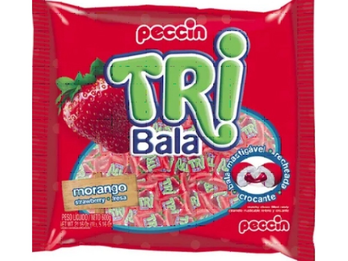 Bala Tribala Recheada Morango 500g - Peccin