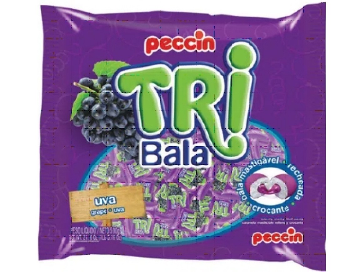 Peccin TRI a bala crocante recheada no delicioso sabor uva.