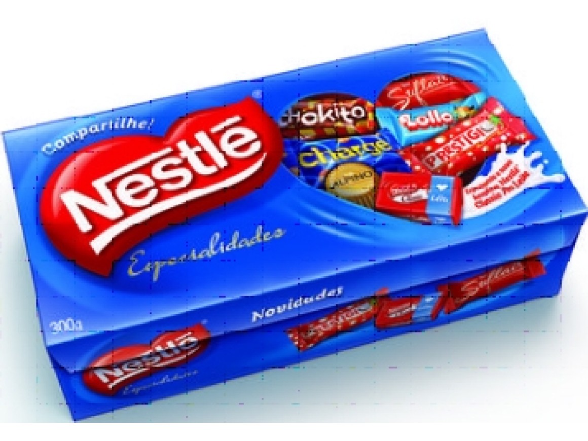 Caixa de bombons sortidos com as miniaturas dos chocolates NESTLÉ®, agora com novos bombons: Nesgresco bombom, Sensação, Nestlé Classic Ao Leite, Alpino, Smash, Suflair, Chokito, Lollo, Galak, Prestígio e Charge. Ideal para presentear ou saborear!