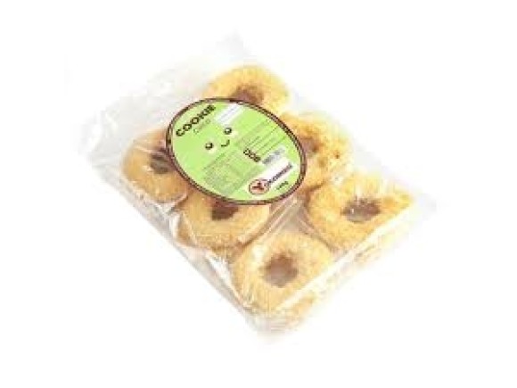 Cookie sabor coco em formato de rosquinha. Embalagem com 6 pacotinhos de 3 unidades que mantém a qualidade e crocância do produto.
